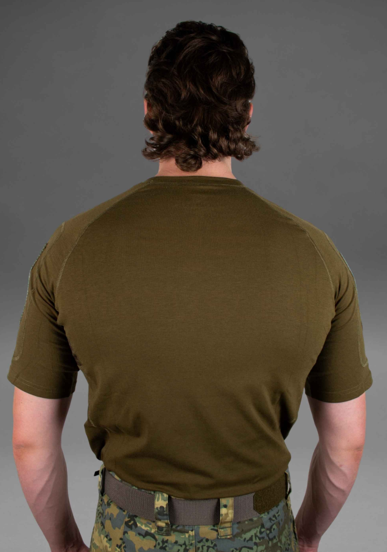 Der Schnitt des Tactical Tee ist auf funktionale Bewegungsfreiheit ausgelegt und berücksichtigt das Tragen unter zusätzlicher Ausrüstung. Dabei bleibt das Shirt angenehm, ohne einzuengen oder aufzubauen.