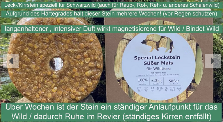 Produktinformationen "Wildlutscher Spezial Leckstein süßer Körnermais | bindet und lenkt Wild"