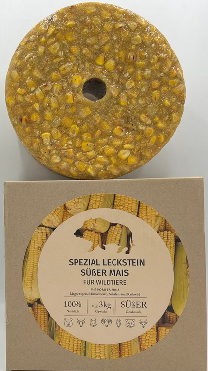 Der Wildlutscher Spezial Leckstein süßer Körner Mais ist ein Wildlockmittel speziell für Schwarzwild und Gamswild.